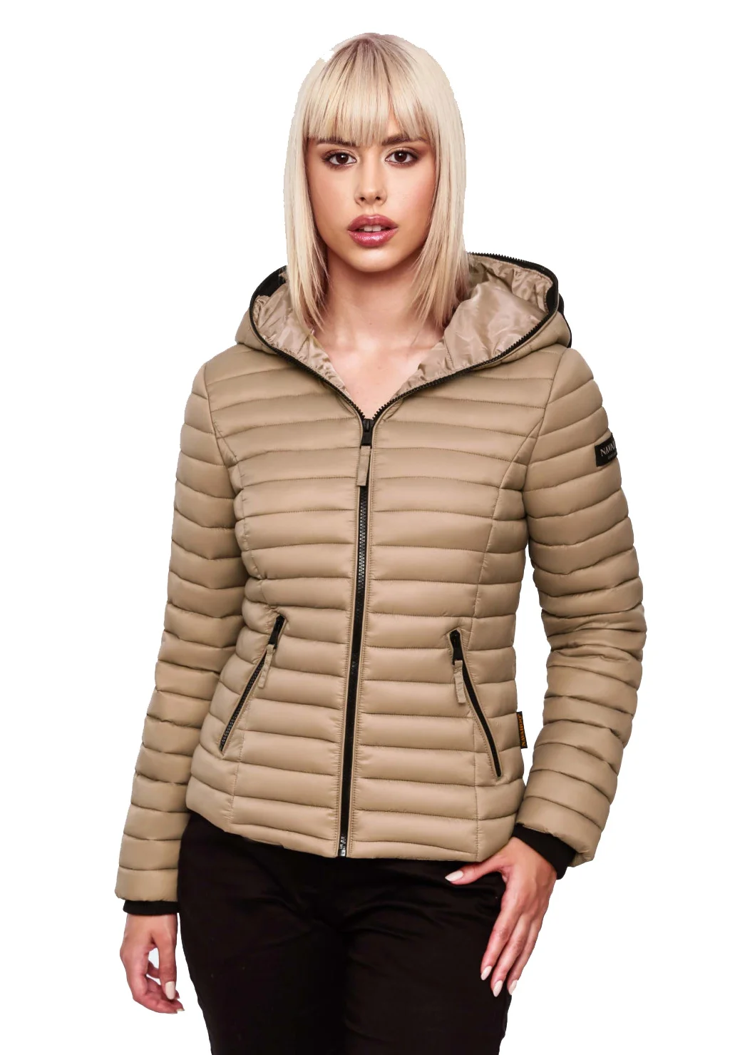 Navahoo γυναικείο μπουφάν καπιτονέ με κουκούλα σε χρώμα taupe μπεζ
